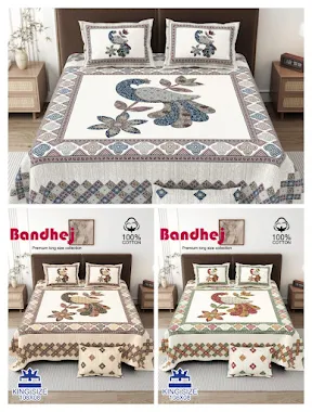 This Bandhej Pattern King Size Bedsheet (108×108) is made using soft and breathable 100% cotton with a premium 280 TC weave for long-lasting comfort. The traditional Bandhej design reflects Jaipur’s textile style and adds a premium look to any bedroom. The set includes 1 jumbo bedsheet with 2 matching pillow covers, stitched with neat finishing for durability and everyday use. Ideal for home use, gifting, retail shops, and wholesale buyers. Manufactured by RS Handicrafts World, a trusted supplier from Sanganer known for quality fabrics, proper sizing, and consistent wholesale supply.
